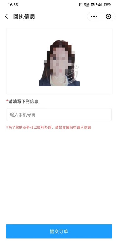 第五、等待10-30分钟左右(拍摄照片没有问题的情况下),回执办理成功后,微信的“服务通知”会推送消息进行提醒,如需加急请联系客服工作日(加急时间 9:30-18:00)