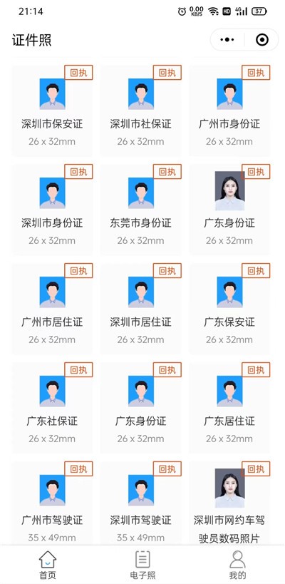 第六、重新进入照片回执号小程序,点击底部的“证件照”按钮,进入后可以下载回执单到手机上面,最后就可以去办理相关证件啦!