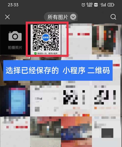 (2)、然后选择相册中的二维码进行识别,就可以进入小程序了。
