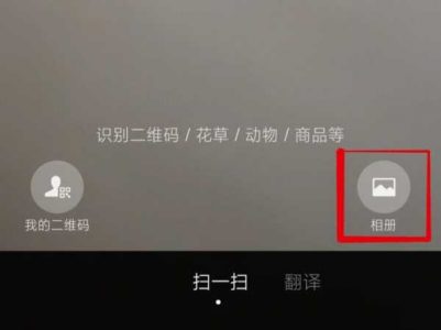 (1)、用手机访问本页面的用户,可以先保存上面的二维码到手机相册;然后打开微信的扫一扫功能,在扫描页面中选择 “相册” ,如下图所示。
